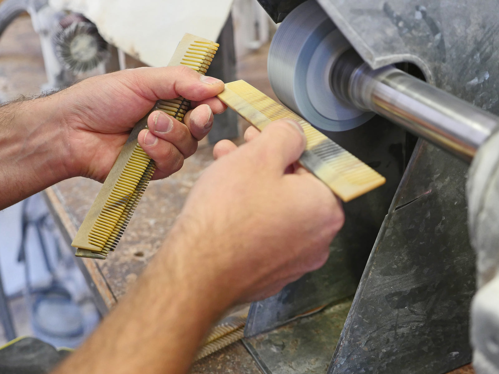 Das Sortiment umfasst aber viel mehr als nur Kämme. Auch edle Schmuckstücke, zeitlose Interieur-Accessoires und Gebrauchsgegenstände wie Schuhlöffel werden in der Manufaktur in Handarbeit erzeugt. Die vielfältige und überraschende Farbgebung und Maserung macht jedes Stück zu einem Unikat.